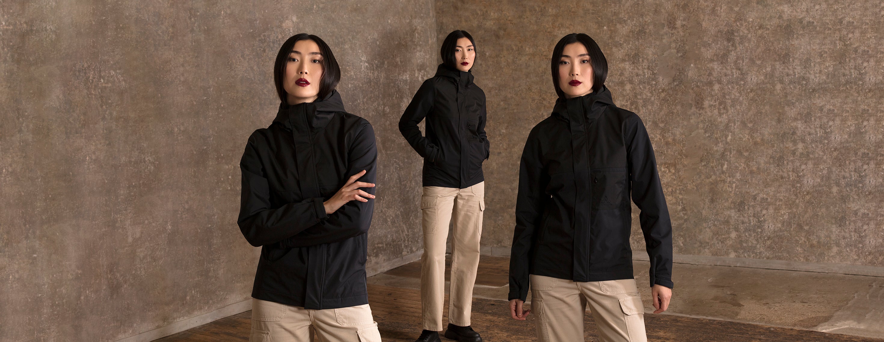 Whisper is a versatile water resistant windbreaker softshell jacket with color-blocked panels that provides a streetwear vibe to this elegant everyday jacket.